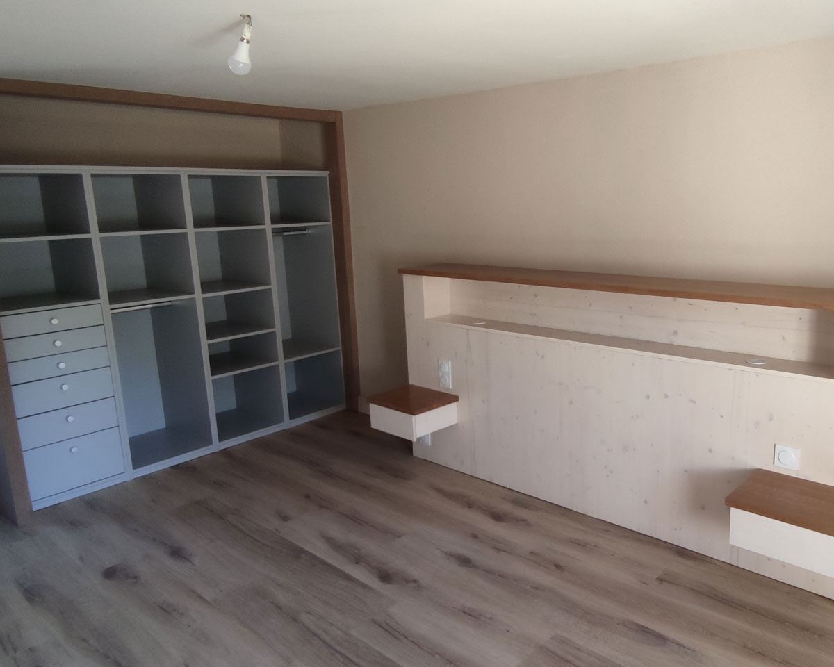 Agencement intérieur sur mesure à Vézins-de-Lévézou (Aveyron) – dressing et tête de lit