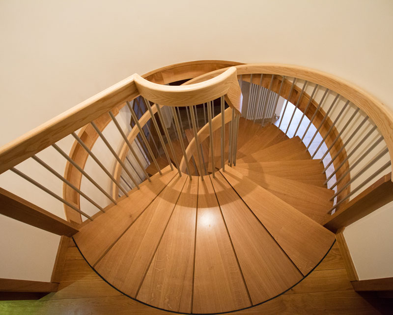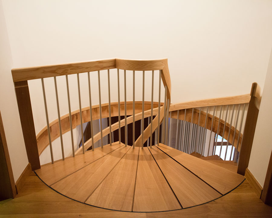 Réaliser un escalier imposant et confortable qui devienne la pièce maîtresse du salon, tout en restant aérien et sans encombrer l’espace.