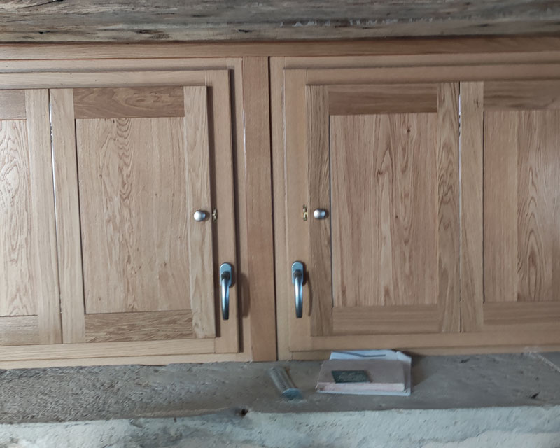 Fabrication dans notre atelier d’un meneau central en chêne afin de diviser l’ouverture en deux parties égales. Installation de menuiseries bois gamme FT60 en chêne avec volets intérieurs intégrés. Pour conserver l’esthétique traditionnelle de la bâtisse, des petits bois ont été ajoutés à l’intérieur et à l’extérieur des vitrages. Le bois a été protégé par une lasure incolore teinte naturelle afin de préserver son aspect authentique.