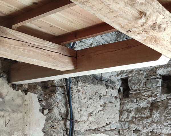 Fabrication en atelier d’un plancher bois sur mesure ainsi que de sa structure porteuse. L’ensemble a été installé sous la toiture afin de créer un nouvel espace fonctionnel. Des essences de bois locales ont été utilisées pour garantir un rendu authentique et une parfaite intégration dans l’habitation.