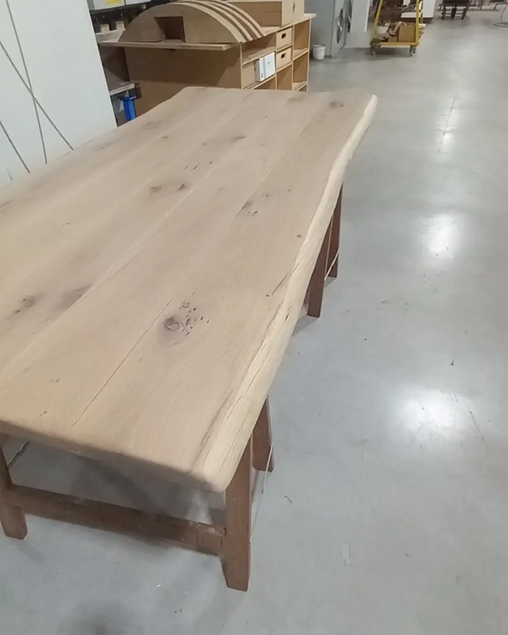 Le besoin portait sur un plateau en chêne massif à forte identité, loin des finitions industrielles standardisées. Le client recherchait un bois visible, vivant, avec des formes organiques, tout en bénéficiant d’un travail soigné garantissant durabilité, stabilité et confort d’usage au quotidien.