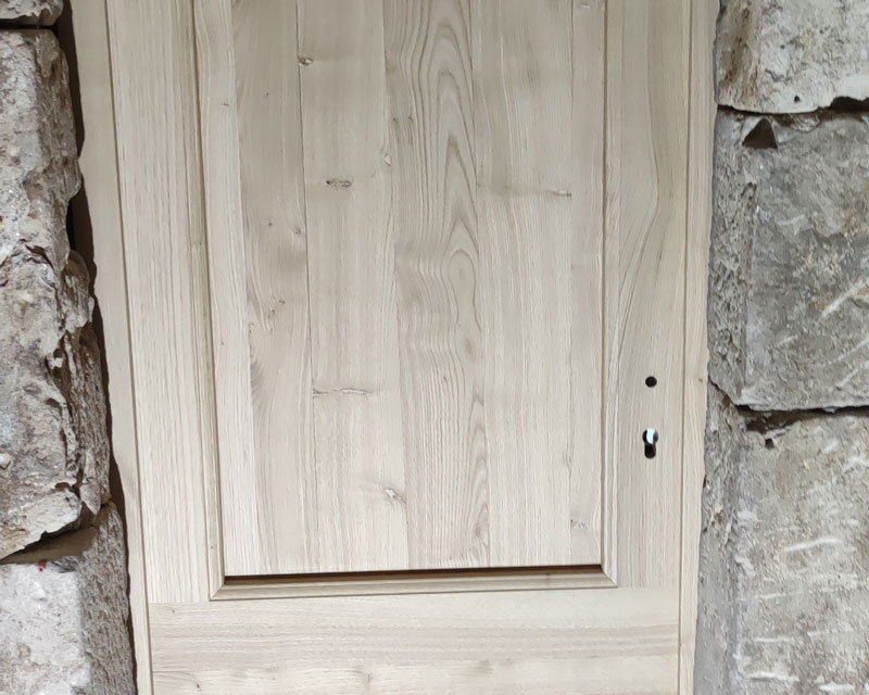 Fabrication et installation de deux portes d’intérieur en chêne massif réalisées dans un style traditionnel. L’une des deux portes a été conçue avec une forme cintrée afin de s’adapter à l’ouverture existante et de conserver l’authenticité du lieu.